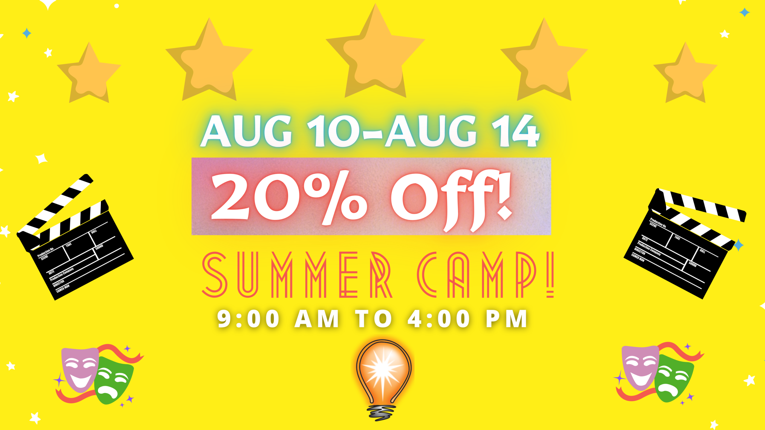 2. Afternoons Only Option: We will gladly accommodate Afternoons Only from 12pm-4pm from Monday-Friday! To register for this option: 1) E-transfer info@sparxstudioacting.com $282.50 ($250 + tax) and complete the online Sign Up Form